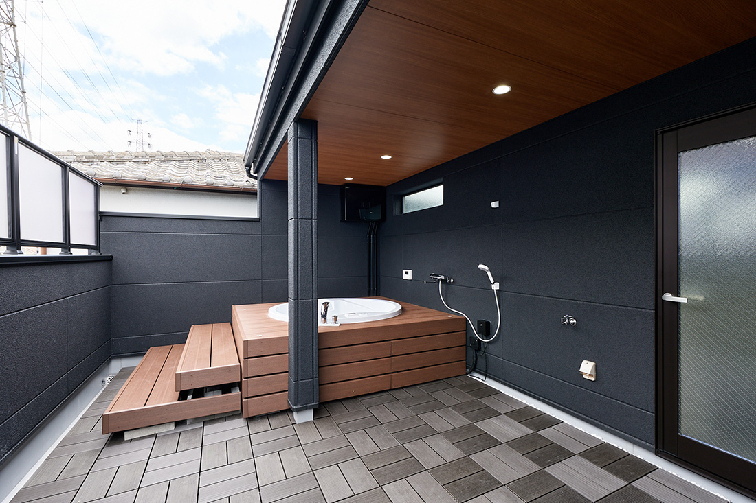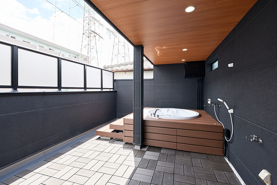 屋上庭園に出るとそこにはジャグジーバスが。家族団らんの時間がよりリッチなものになるでしょう。