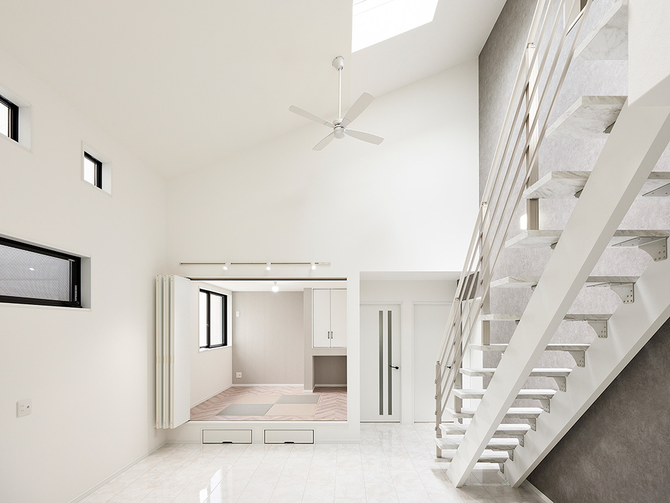 広々平屋リビングとジャグジーバス付屋上庭園が魅力の邸。